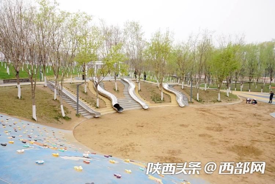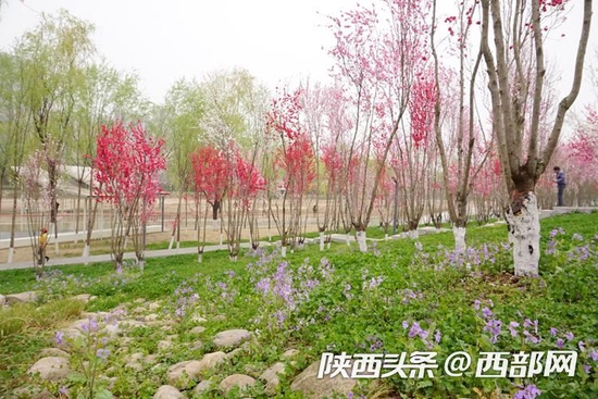 西部网讯 (记者 刘一红)行乐须及春。在城南有一处踏春游玩的绝佳地,那就是沿着潏河而建的樊川公园。公园占地面积近1000亩,露营区、儿童游乐场、人工沙滩、花草树木……大人小孩都可以在这里找到乐趣。